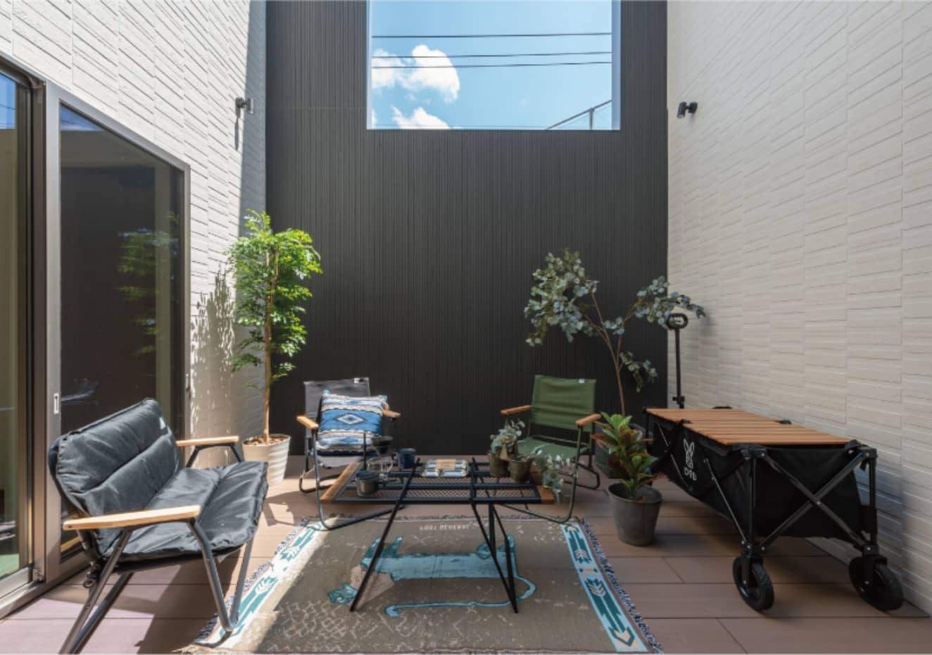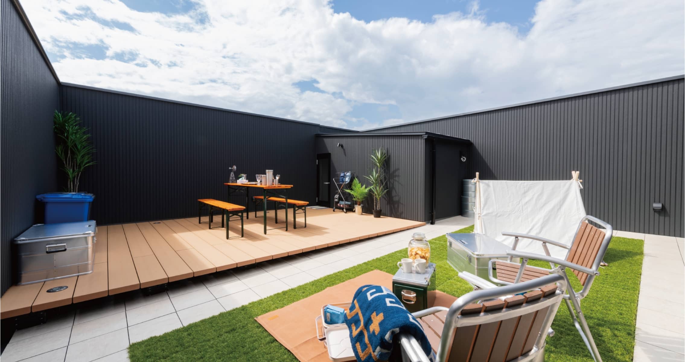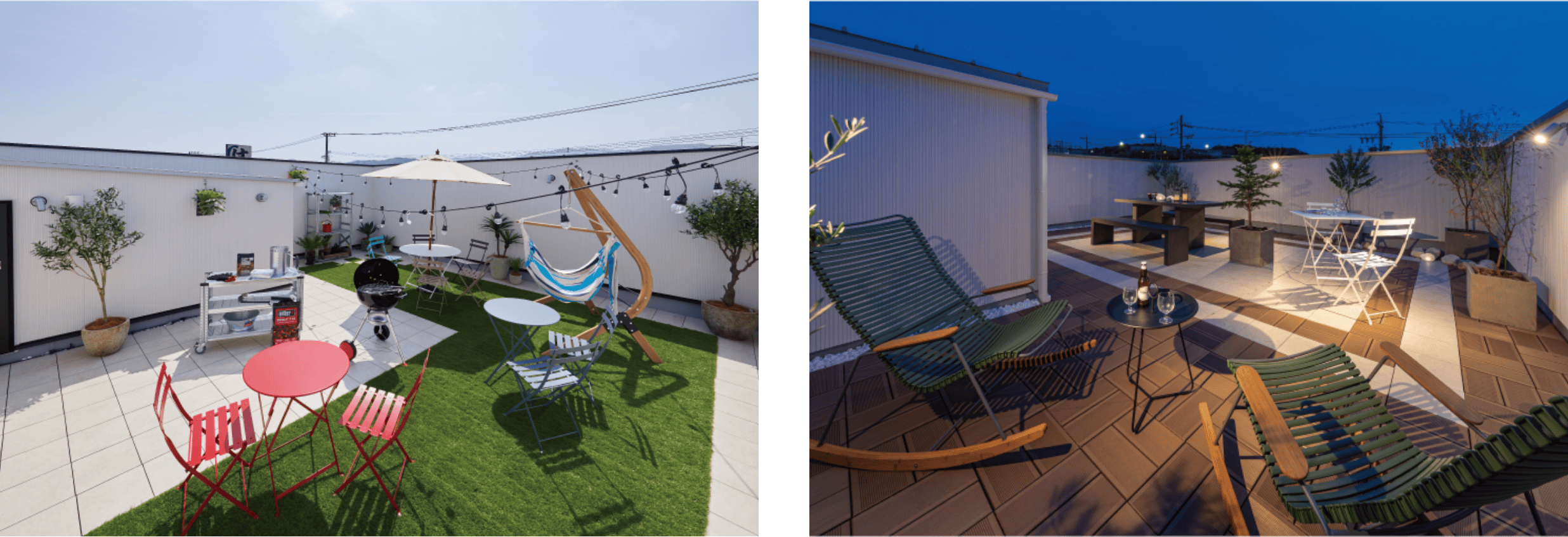 屋上を暮らしの一部として楽しめるスカイバルコニー。日常の家事はもちろん、家庭菜園やBBQを楽しんだり、夜には星を眺めたり…。開放感と機能性を兼ね備えた、家族だけの青空公園。