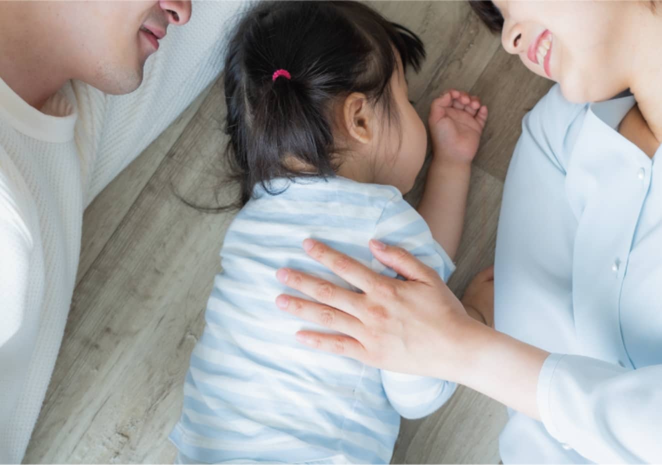 子どもたちの寝顔を見ながら、ゆったりとした時間を過ごせます。畳や間接照明を取り入れ、リラックスできる落ち着いた雰囲気に。一日の終わりに心がやすらぐ、家族の休息空間。