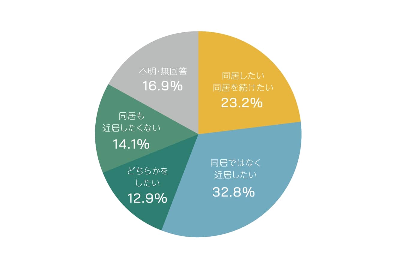 同居あるいは近居を希望するが68.9%に。完全な同居よりも、生活のリズムやプライバシーを尊重できる“近居”や“分離型の二世帯”が、今の家族のリアルな選択肢になっています。