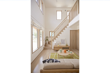 注文住宅CLARIS暮らしに高さと広がりを、木と白で彩る2階建ての家