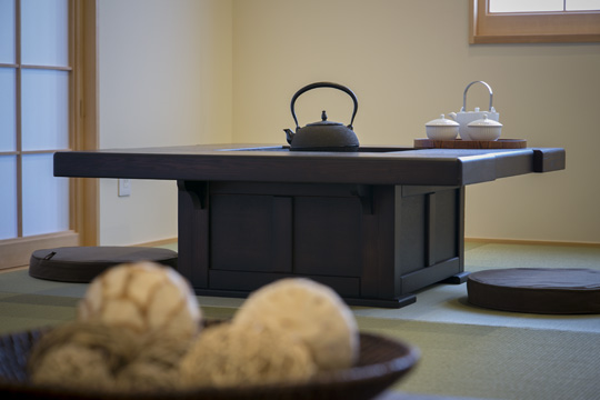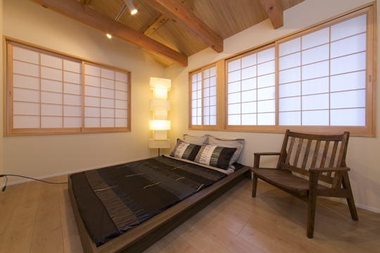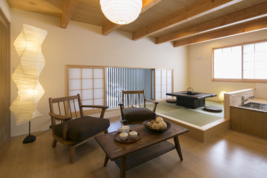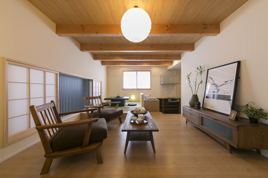 #和テイスト#工夫された空間づくり#アクセントクロス#シーリングファン#和室#土間