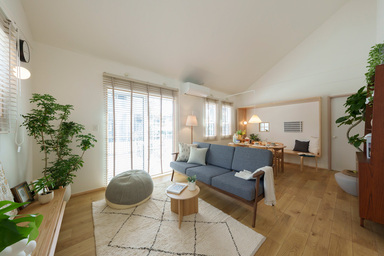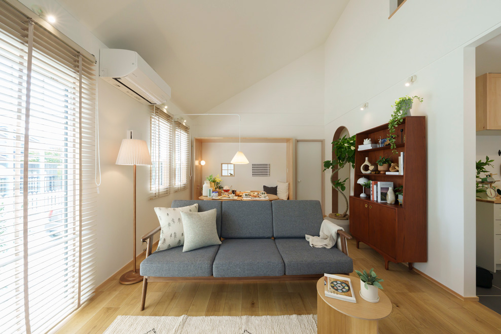 規格住宅CLARIS暮らしに高さと広がりを、木と白で彩る2階建ての家