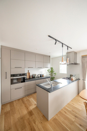 カップボードにはベツダイオリジナルのカップボードを採用。オーブン一体型のスタイリッシュなデザインでお部屋を引き締めます。