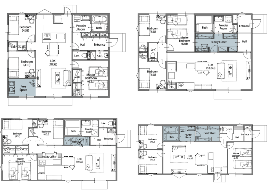GX仕様と2×6構造がつくる安心の土台に、100プランの間取りと、6つのインテリアテイストを自由にレイヤーしていく。