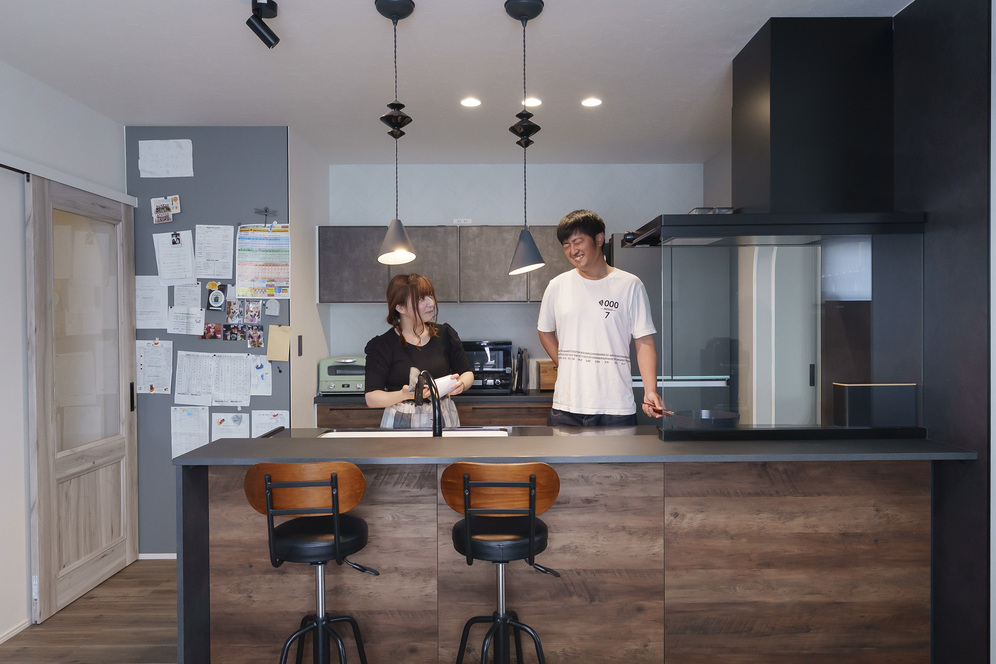 夫婦共通の趣味である漫画など、好きなものに囲まれた趣味部屋の充実や、季節ごとに変化を楽しむレイアウトなど、もっともっと好きなことを叶えていきたいと目を輝かせる奥さま。お気に入りのキッチンに旦那さまと並んで、穏やかな夫婦の時間を過ごしているそうです。
