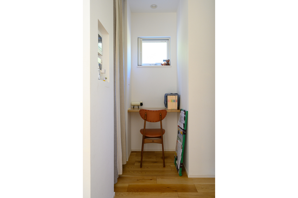 北側の窓辺にカウンターを設置しているのですが、これは以前の住まいでご夫婦がDIYしていたもの。「これをこのスペースに置くと決めていたので、座った時にちょうど外が見えるように窓の高さを考えていただきました」。ここでは、ちょっとした作業をする、音楽を聴くなど趣味の時間を過ごすほかに、仕事の勉強をすることも。一人で没頭できる場所になっています。