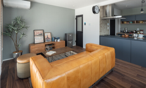「DULTON」の家具や道具はアンティーク感が魅力。アクセントクロスやフローリングにもよく合う、統一感のあるコーディネートが実現した。