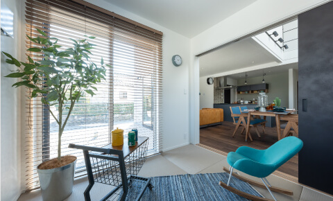 ムダのないシンプルなデザインながら、暮らしの工夫がたくさんのZERO-CUBEシリーズ。「+BOX」は1階に和室を追加することで、部屋のほかにもウッドデッキやルーフバルコニーと、思い思いに楽しめる自由なスペースをプラス。インテリアは人気の「DULTON」とコラボレートし、こだわりの部屋づくりを実現。