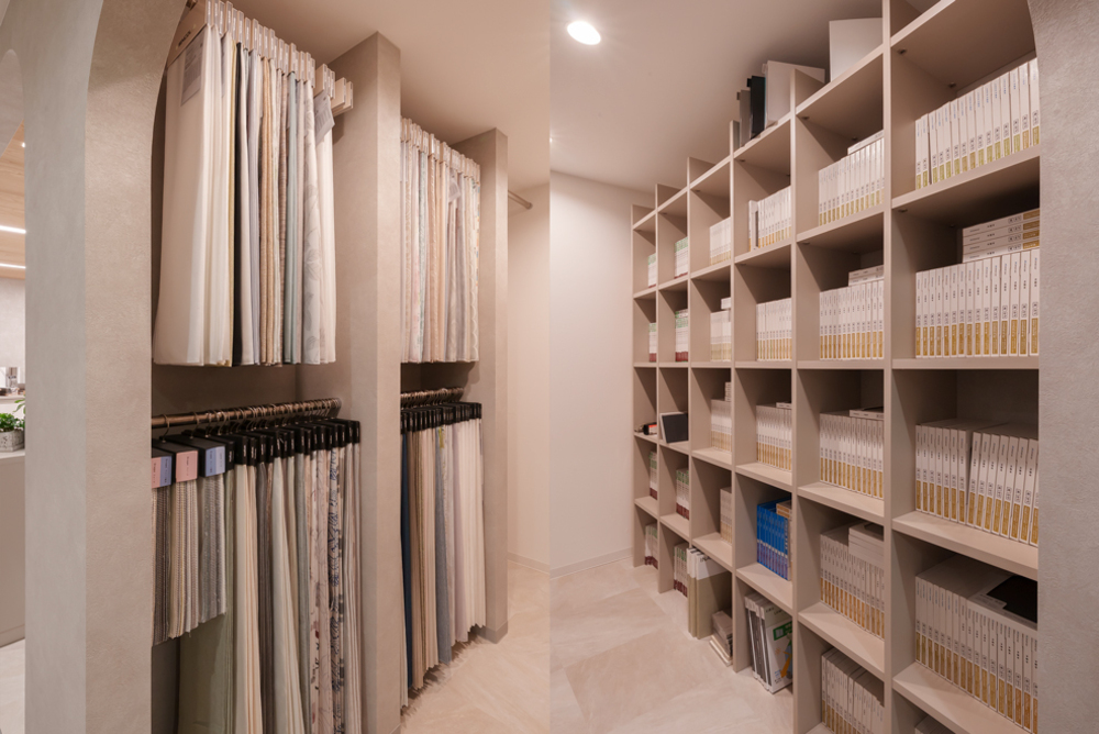 様々なオリジナルキッチンや壁紙・建材、建具のサンプルなどを展示しており、
