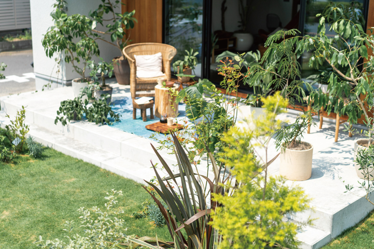 開放感あふれるテラス。大開口の窓が、リビングと庭をゆるやかにつなぎ、内と外との境界を感じさせない、大きな広がりを生み出しています。