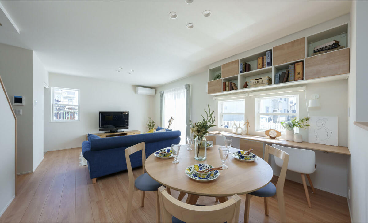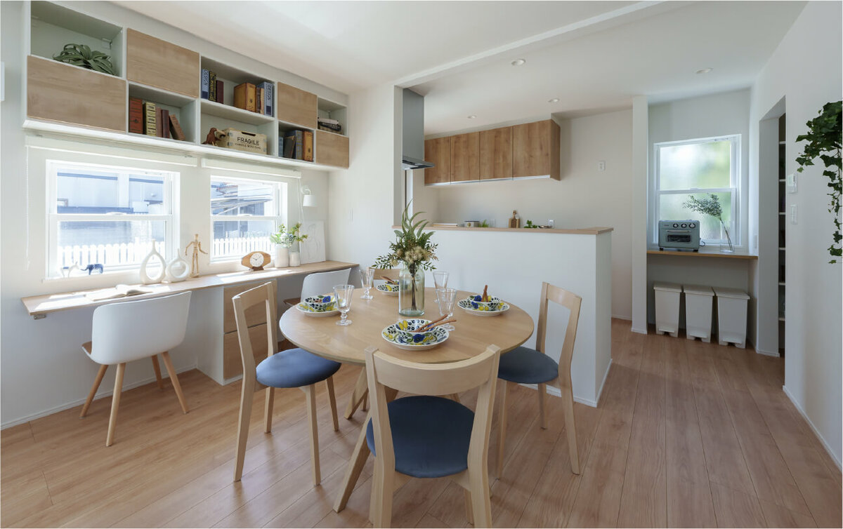 ダイニングの造作デスクで勉強も読書も楽しめる!