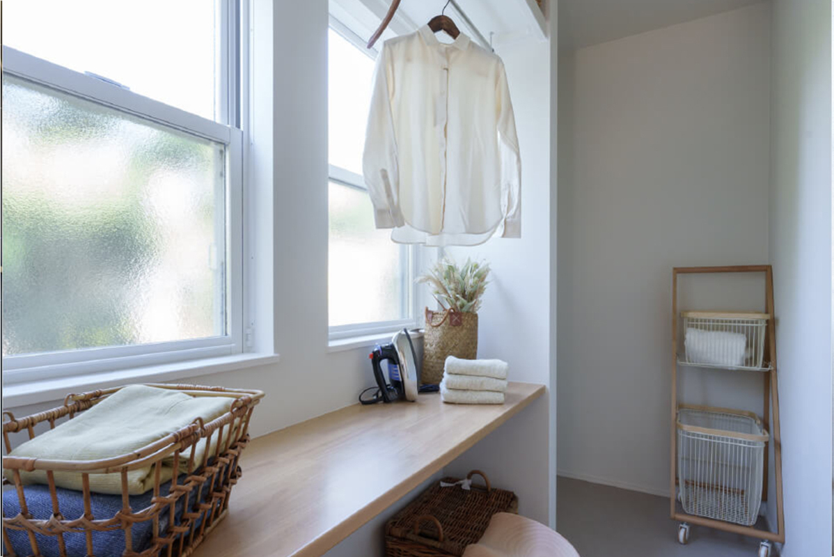 洗濯はもちろん、アイロンがけやお裁縫もできるランドリールーム!