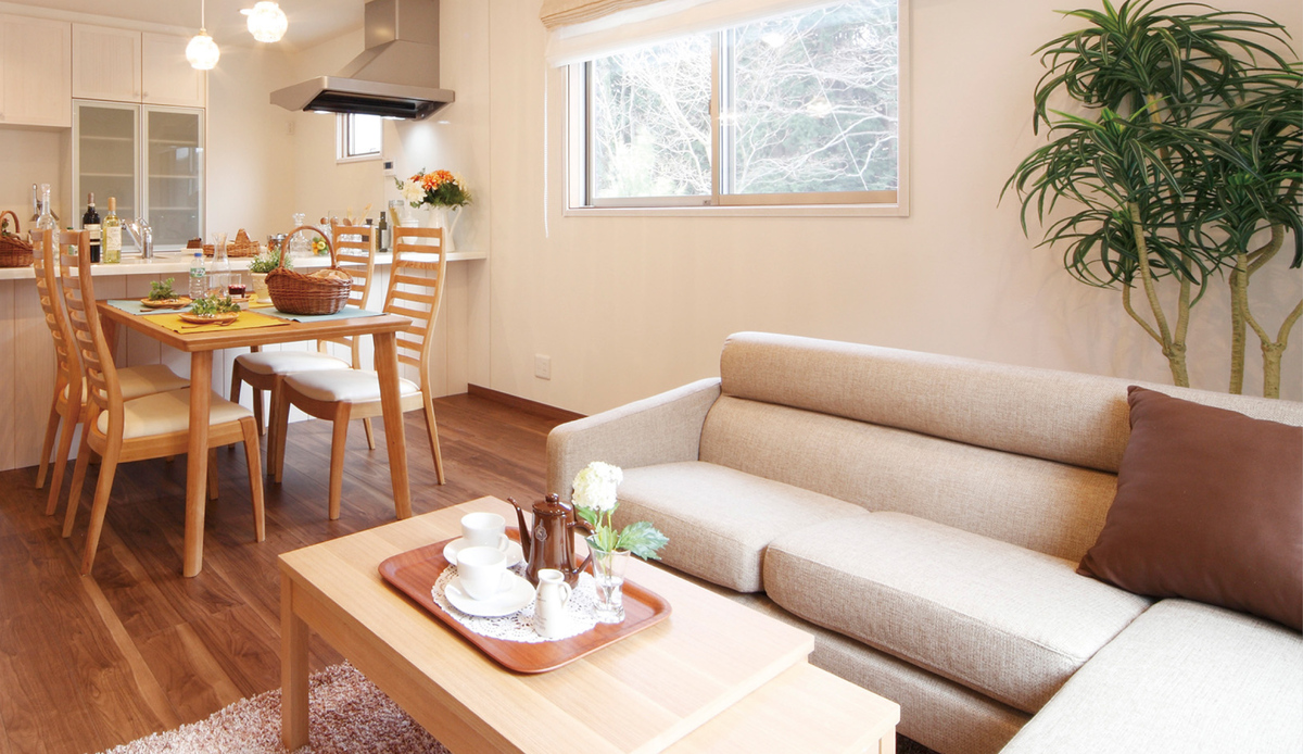 ここは、大きな窓から差し込む太陽の光が、部屋いっぱいに温もりを運び、安らぎをもたらす住まい。 玄関を抜けた先にある”Sunny Room”を住まいの中心に、ピットリビングやウッドデッキ。緑豊かな植物に囲まれるこの家は、どこにいても温かくて穏やかな時間が溢れている。