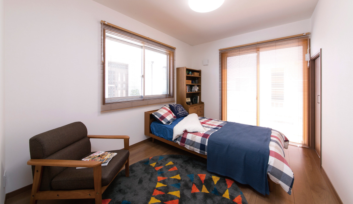 ぐっすり眠れるのは、今日がとても充実していたから。光が心地よく差し込むベッドルームは、一日の疲れや始まりを優しく包み込む空間へ。