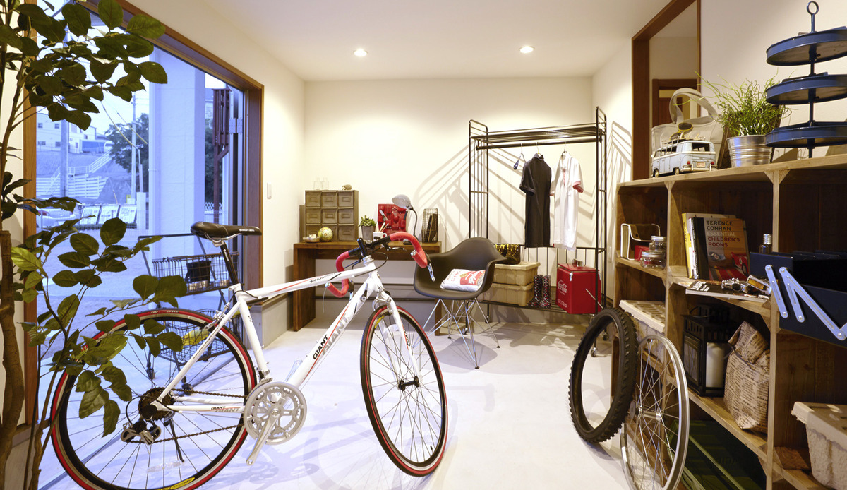 外と内を自然につなぐスペースは、お父さんを少年時代へ。アウトドアグッズの手入れも、入念に心置きなく…。夢中になれるひとときが、ふだんの暮らしをもっと愉しくします。