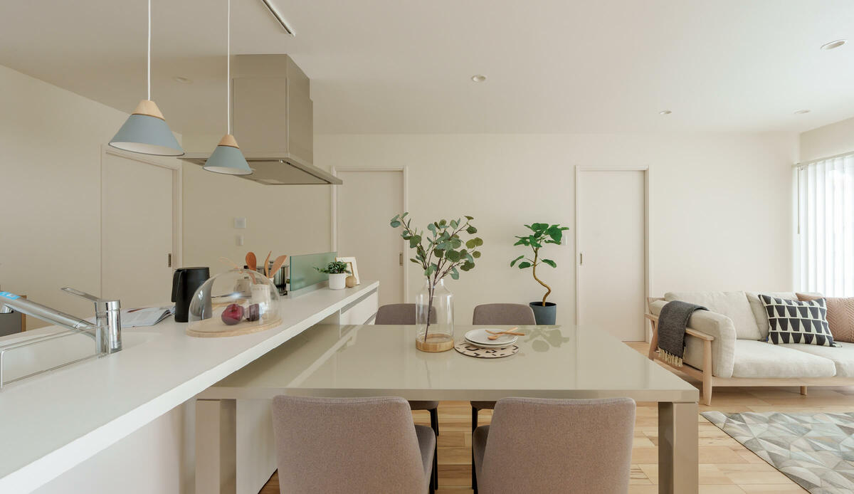 家事の効率化を考えて作られた生活動線には、あったらうれしい便利な機能や仕掛けがいっぱい!ホワイトを基調とした圧迫感のないカラーセレクトで、部屋全体がゆったりとした雰囲気に。平家の良さを活かした高いデザイン性で、明るく開放感のある暮らしが実現する。
