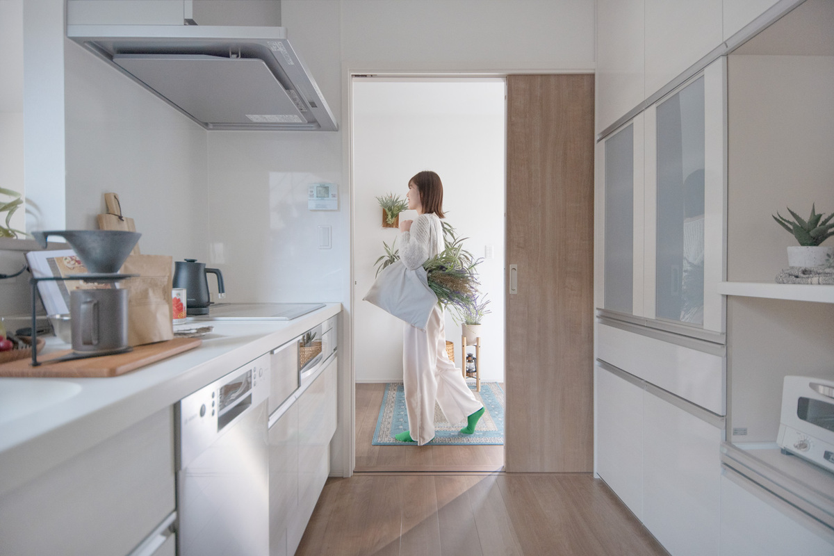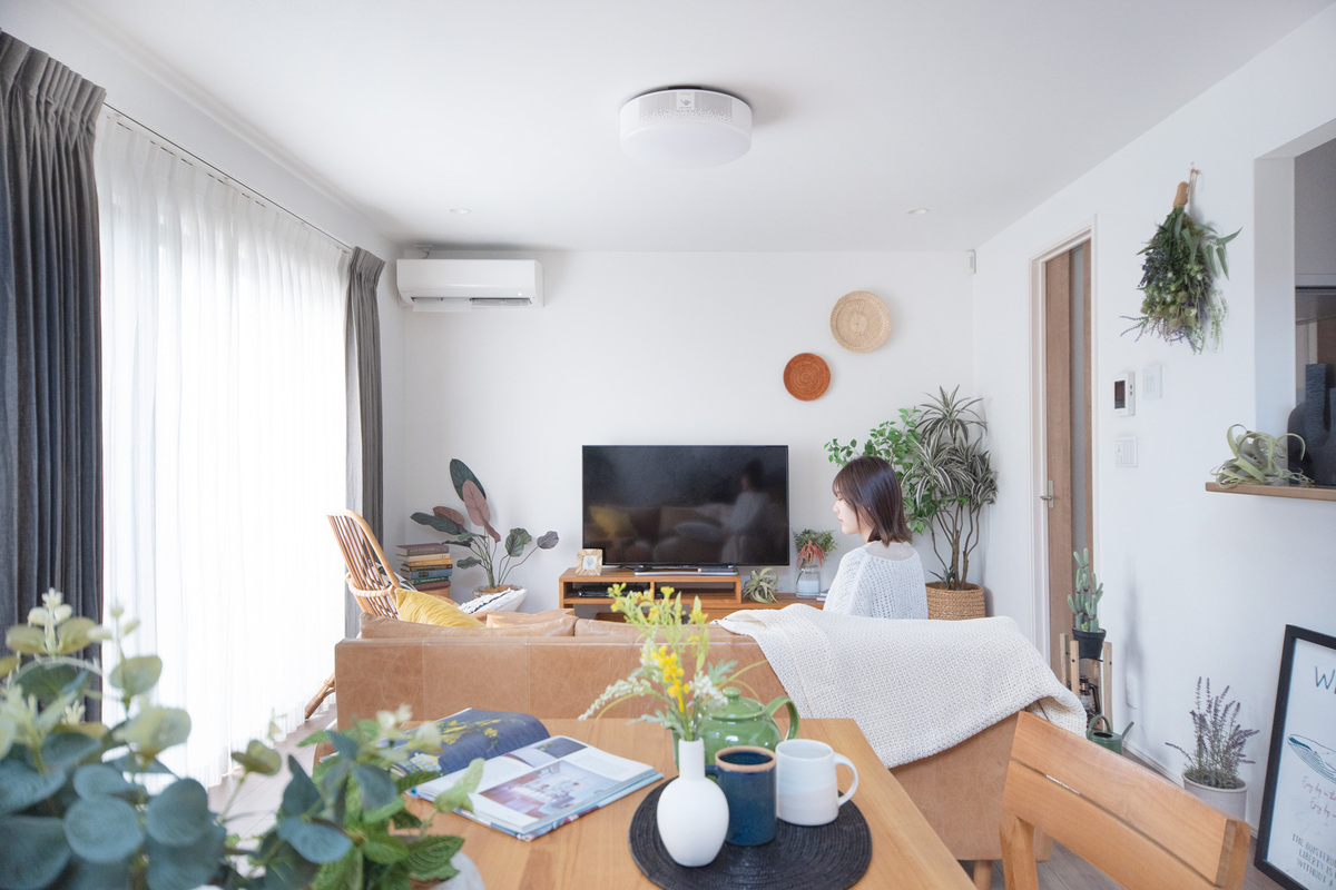 住む方の生活に馴染むよう、シンプルでムダを削ぎ落とした四角い家。凹凸のないレイアウトで、室内も広々した空間を実現。