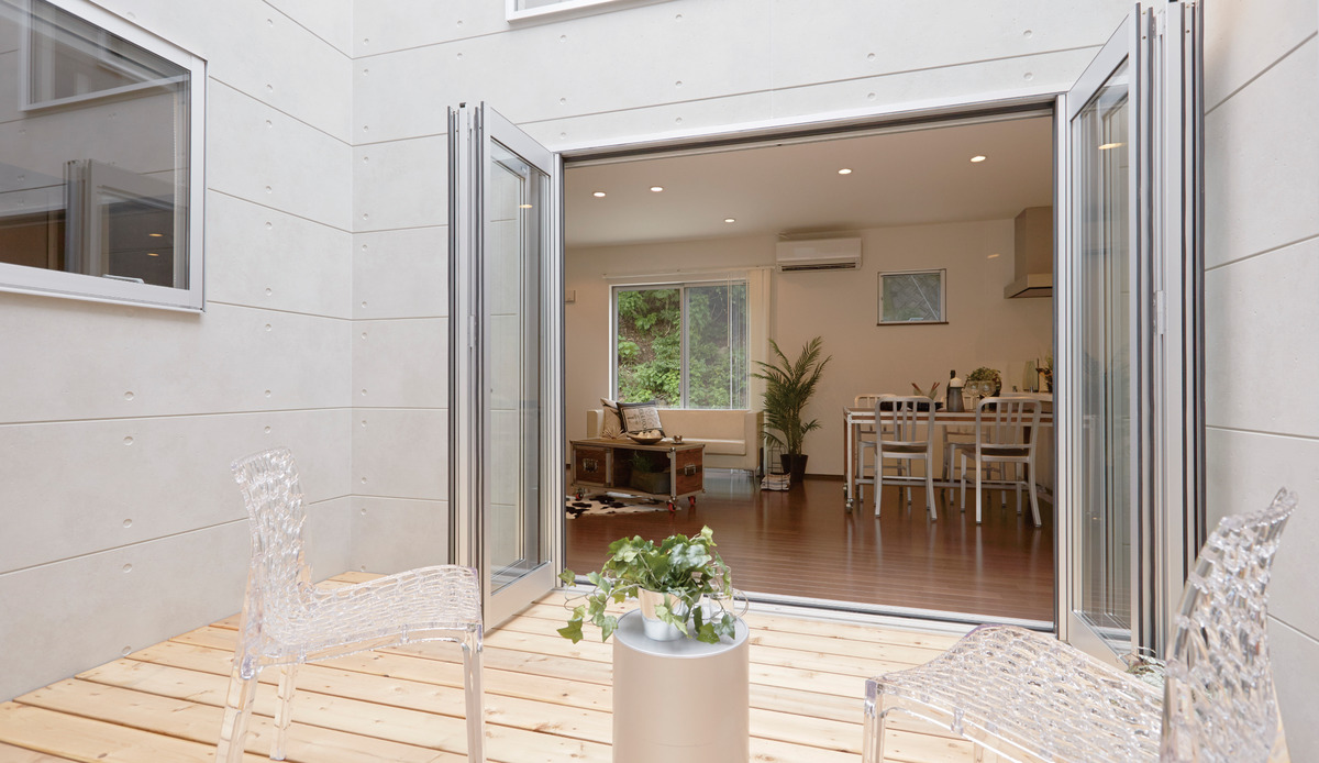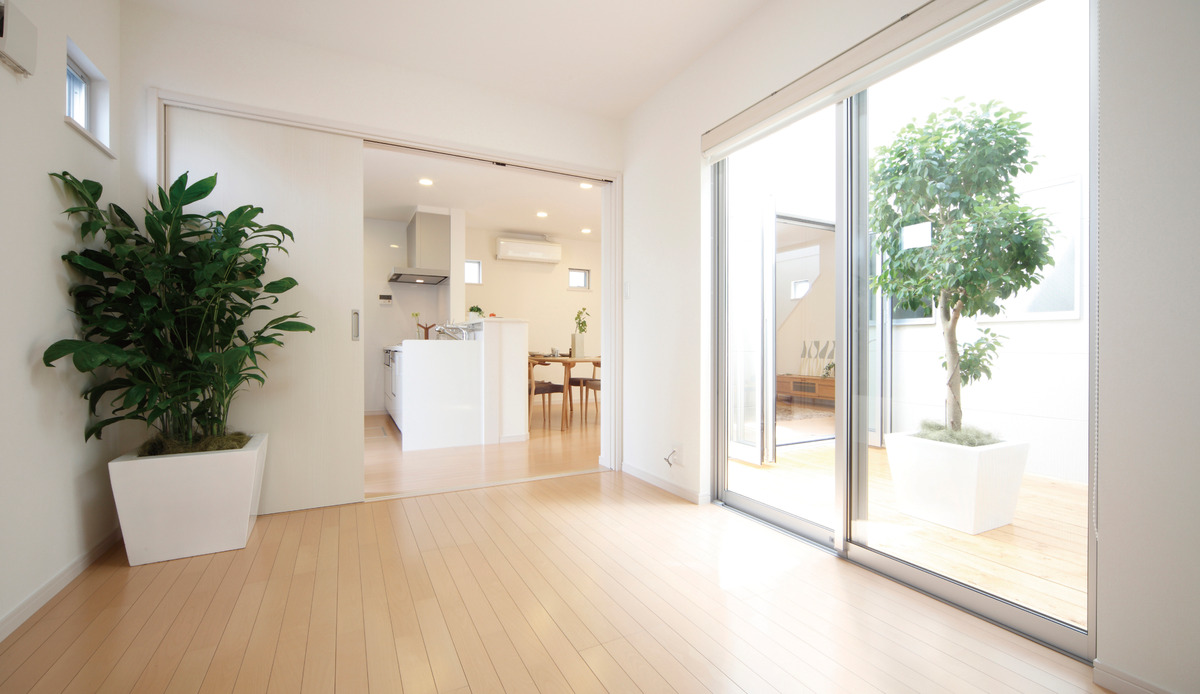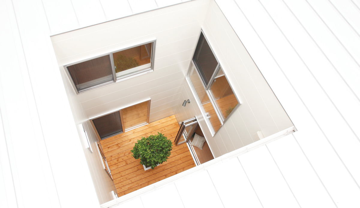 夏の日差し、冬の穏やかな光も光庭の白い内壁に反射し、住まいのすみずみに届きます。また家の中に風の通り道をつくり、新鮮な外気を取り込みます。
