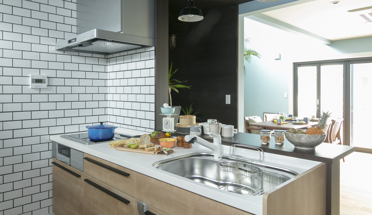 キッチン周りに施すホワイトタイル。暮らしの中にデザインやカルチャー、そしてマインドをさりげなく取り入れています。