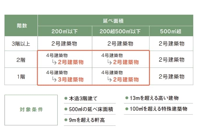 延べ面積500㎡以下、2階建て以下等の木造住宅は、構造審査を省略することが可能で、これを「4号特例」といいます。しかし、2025年以降、現行法で4号特例に適合する木造2階建て以下、高さ13m以下、軒高9m以下、延床面積500㎡以下の建築物は、2号または3号に区分され、300㎡超の建築物は許容応力度計算が義務化されます。2025年以降構造計算の審査が必要になります。